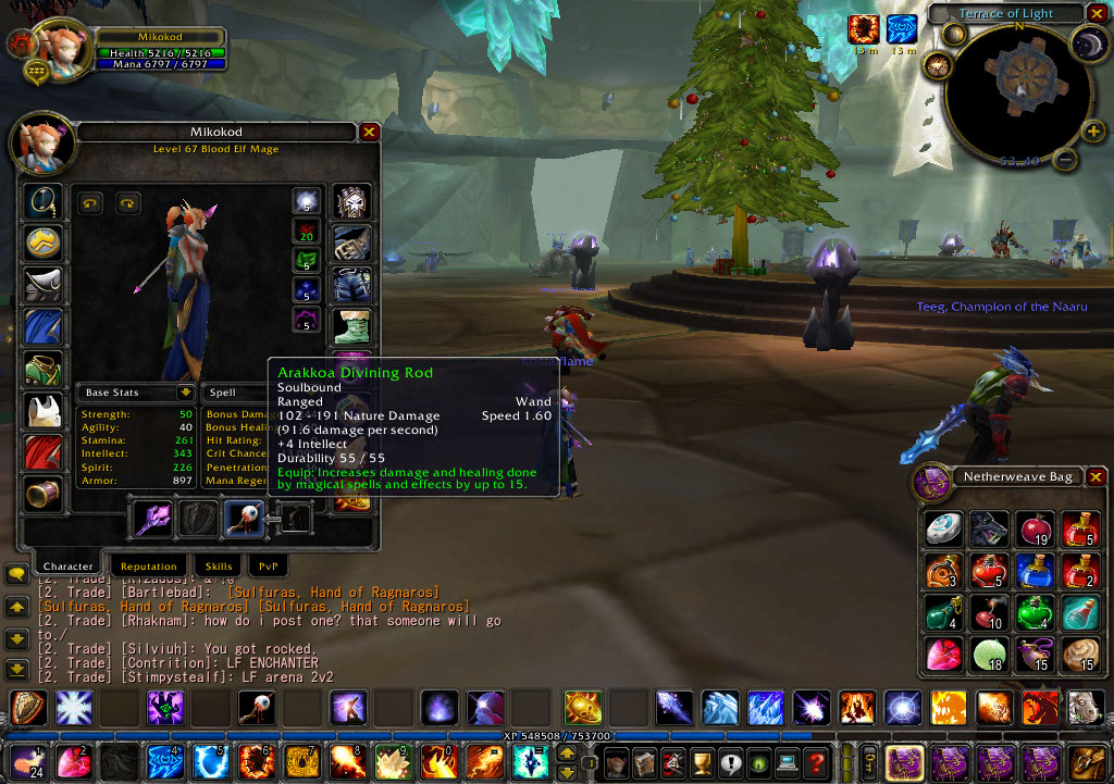 MMOであるWOWには、きまったルートというか人生みたいなものは、ある意味ではありませんが、ある意味ではあります(なぞ すなわち、ふつーに遊んでいれば自然とそうたどるであろうルート・・・のよーなものです。 しらないで遊んだ方がいい!!!、という方は、以下のお話はよまないでくだしゃい-x-。 ま、いっかぁ、ひとそれぞれだしぃ、、、みたいなふーにおもったりするよーなお方は、お読み下さい。 *以下、ドクダンととヘンケンにミチタWOWにおける人生ルート* [レベル1~10] ・各種族の生まれ故郷で、誕生します。 ・かんたんなクエストをこなし、よわよわな敵(といっても初期キャラにはけっこー強敵)をたおし、 いろいろな基本的知識等を習得します。 ・英語アレルギーがあるひとだとココで最初の挫折を経験します (^^; (例) 「クエストでなにをすればいいのかがよめないじょ!!!(はうっ!?」 ・未だまわりには同じ陣営のひとしかいませんので、対人戦を経験することはありません。 ・未だまわりには同じ種族のひとばっかりです。 [レベル11~20] ・ある程度自信がでてきて、あちこち知らない土地に旅をしたくなります。 ・自種族の首都(いちばん大きい町、すなわち、みやこ)にたどりつきます。 ・運が良ければ(わるければ?)最初の(敵陣営のひととの)遭遇戦を経験するかもしれません。 ・他種族のひとともいっぱい出会います。 ・自分以外にもいろいろな種族のひとがいて、職業のひとがいて、、、ということをかなり意識しだし ます。 ・自分の選んだ種族と職業に疑問を抱き始めますΣ( ̄▽ ̄; (例) 「あれ、ひょっとして、戦士ってすごいたいへんなんじゃないの?」 「わーメイジ系って、すぐしんじゃうなぁ」 「え、ハンターって、じぶんではなにもしてないんじゃない!?」 「プリーストって、ほかのひとを回復するばっかりで、つまんない。。」 「装備の修理代だけでクエストの報酬きえちゃうよ・・・」 などなど [レベル21~30] ・中立地帯(味方陣営のひとも敵陣営のひともどっちもいる&だいたい同じくらいのレベルのひとたち がいる = 遭遇戦がいっぱい)でないと手に入らないアイテムやクリアできないクエストが増えて きます。 ・インスタンス(=ダンジョン)に行くようになります。 ・インスタンスに行くパーティー5人をいちからあつめるのはけっこーたいへんなので、自然といっし ょに遊ぶグループができたりして、ギルドがうまれたり、どこかのギルドにはいったり、などなどす るよーになります。 ・「WOWってたのしい♪」と最初に一番思うレベル帯です。 ・バトルグラウンド(=きまったルールのなかで対人を楽しむ特別フィールド)に行くようになります。 ・以上より、対人、というものを好きでもきらいでも考えないではいられなくなります。 [レベル31~40] ・レベル上げがとてもたいへんです。 ・WOWで多くのひとたちがココでダツラクします (^^; ・いっしょにがんばるなかまやせんぱいがいればこのやまをこえることができますが、いないとよっぽ ど根気のあるひとじゃなければむずかしいです。 ・装備がそろうまでがたいへんな時期であり、そろってしまえばさくさく進みます。 ・そのことをあらかじめわかっている経験者のひとたちは、装備をお金にまかせて先に買っておいて、 セカンドキャラの子に渡しちゃうので、くるしんでいるファーストキャラたちを横目にさっさとレベ ル40の世界に旅立ってしまいます。 ・ギルドに"わかっている"先輩がいる場合には、意外とさくさくこえられます。 ・とにかくつらいです、、ええ、、、。 ・つらいのはクエストなので、むりにクエストをせず、ひたすらインスタンスにかよってレベル上げを してしまう、、という荒技もあります。 ・つらさから生産をたのしみはじめる人が多かったりもします。 ・じつはここで生産を上げておくと、あとでとても楽だったりします。 [レベル41~50] ・第二の黄金時代です。 ・レベル30の時代がたいへんだった分、たのしさもひとしおです。 ・サービス満点のたのしいクエストやインスタンスが目白押しなので、ここを経験せずにダツラクして しまった戦友たちに、ほろりと落涙しちゃったりもします(おひ ・バトルグラウンドが(レベル70をのぞけば)いちばんもりあがってるレベル帯が40代だったりし ます。 ・あまりに楽しいので、レベル49のまま、わざとレベルを上げずに遊び続けているひとたちが多数い るくらいです。 ・なぜそんなにたのしいのかといえば、各種族と各職業で致命的かつ一撃必殺的な技や術が未だつかえ ず、それでいてそこそこ強力な技や術がつかえるようになったりするからです。 ・装備がどんぐりの背比べにならざるを得ない(未だレベル的に装備できない&ステータスが低いので 増幅率に差があってもあまり差がでない)ので、うまいひともそうでないひとも、おじかんがあるひ ともそうでないひとも、お金があるひともそうでないひとも、それなりに活躍できます。 ・ただし、レベル46~49