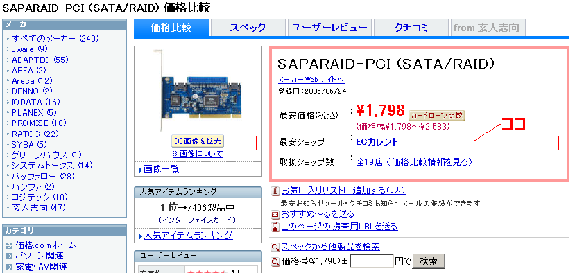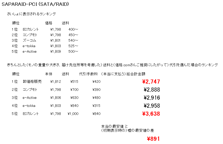 ち、ちがうじゃーん。 送料こみこみでかんがえたら、ECカレントさん、最安値じゃないじゃーんっ!!!!