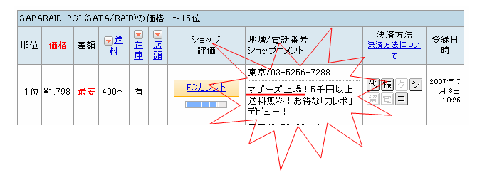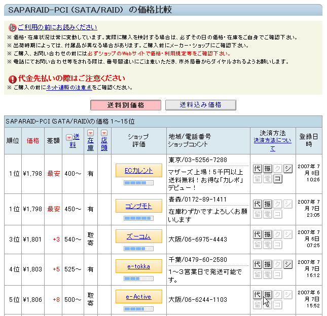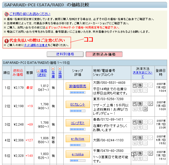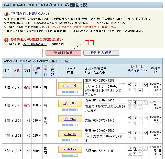 わたしたち購入者が支払うのは、本体(?)の価格のほかに、送料も含まれちゃうんだから、初期表示のときにこっちの画面のほーをみせてくれないとだめじゃないいい(ひどーい