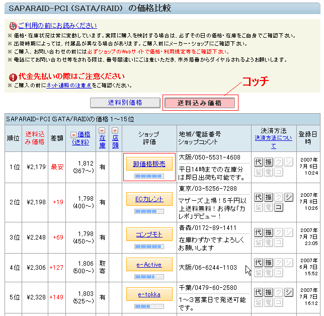 これをみるかぎりでは、『卸価格販売』さんってところが、"送料込みでかんがえると" 最安なのね?(むむぅ(ーー;)