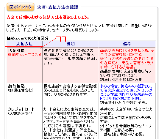 つまり、お金だけさきにお支払いしちゃうと、商品がとどかなかった場合にたいへんでめんどーなことになっちゃうから、商品が手元に届いたときにソレと引き替えにお支払いしたほーがいいよーとゆーことね(ごもっともなのだ
